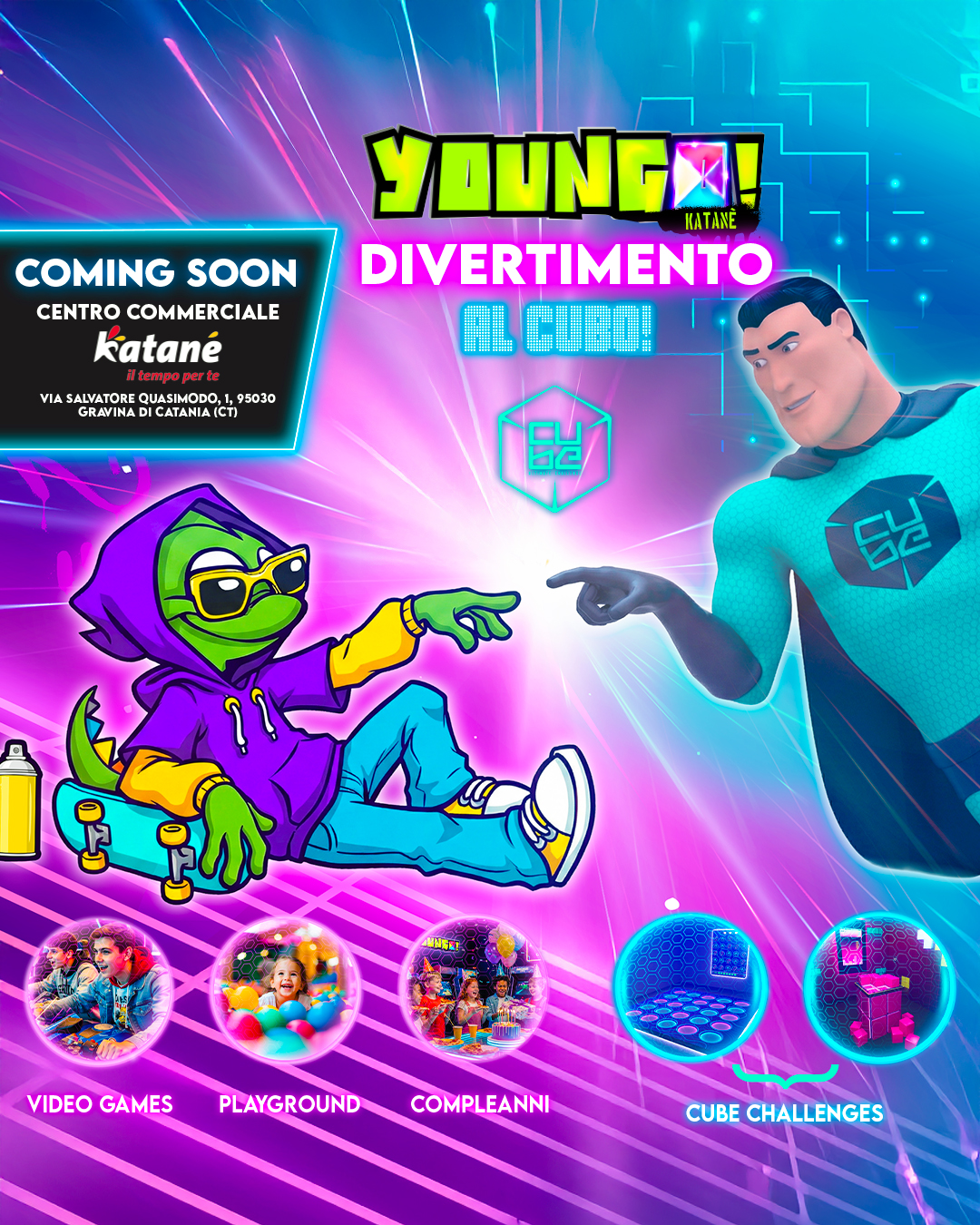 Cube by Youngo Katanè nasce come un nuovo spazio dedicato all’intrattenimento contemporaneo: un luogo dove gioco, sfida e socialità si incontrano per creare esperienze condivise.